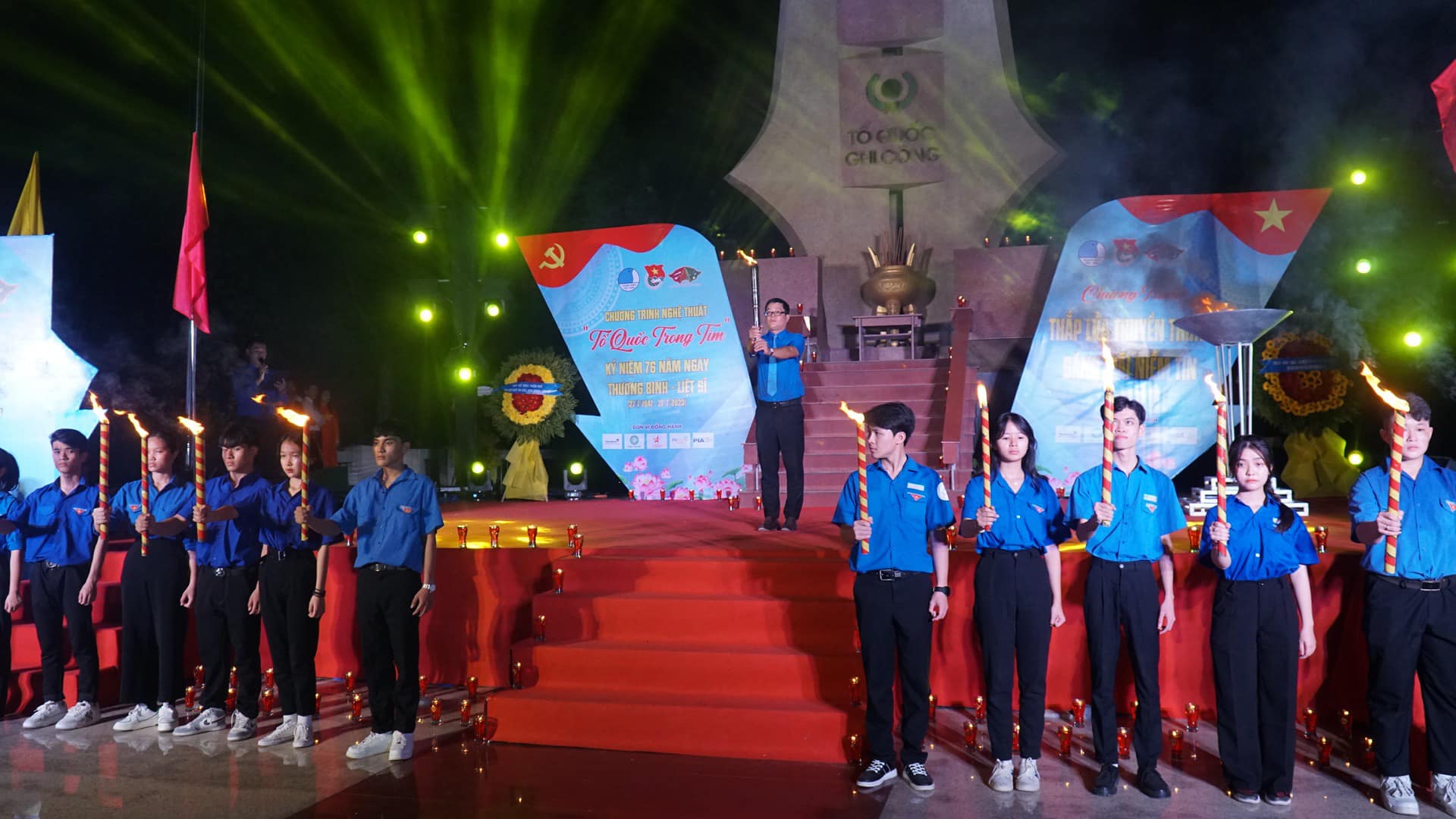 Đúng 19 giờ 00 phút, hơn 1.200 cây nến được thắp lên trong không khí trang nghiêm, xúc động, thể hiện lòng biết ơn, thành kính của tuổi trẻ đối với sự hy sinh to lớn của thế hệ cha anh đi trước.