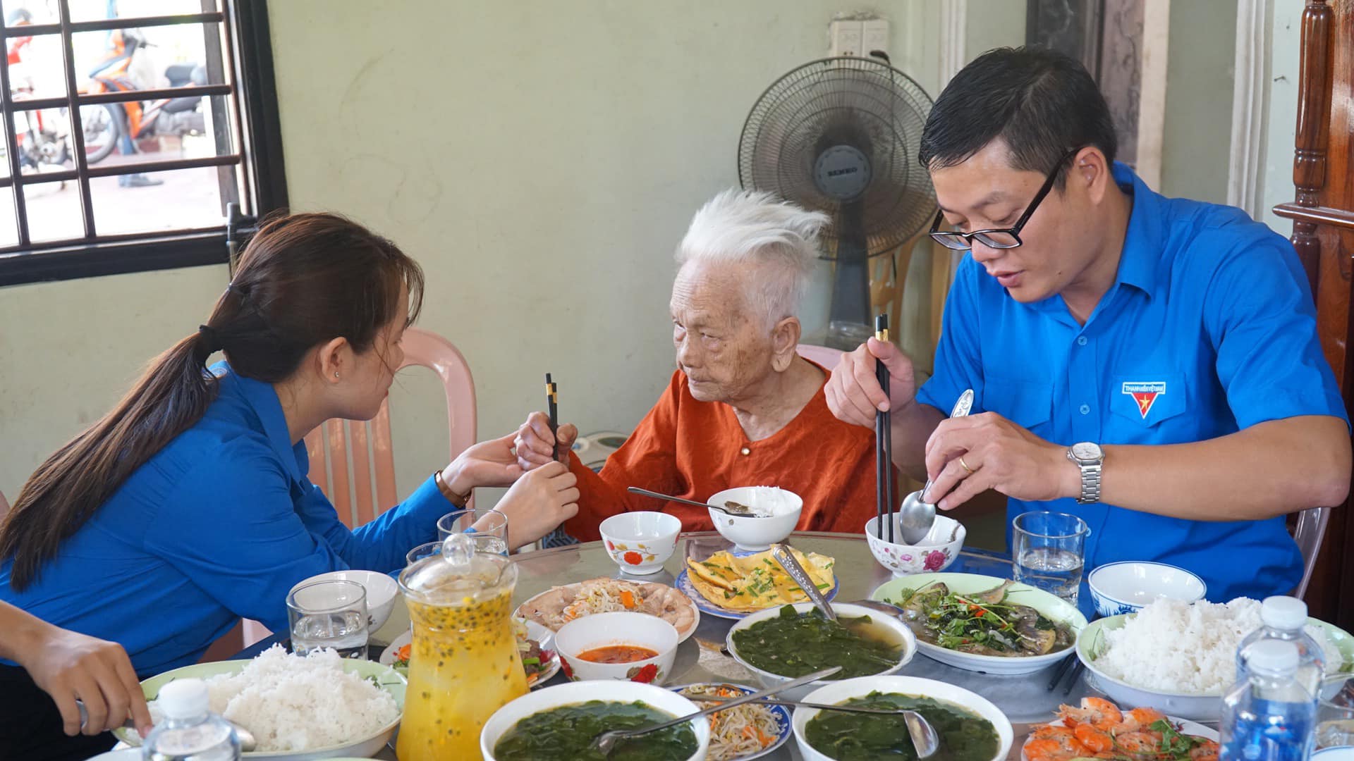 Sáng 26/7, Ban Thường vụ Tỉnh Đoàn đã phối hợp cùng các đơn vị tổ chức thăm, động viên, tặng quà Mẹ Việt Nam Anh hùng Nguyễn Thị Tuyết tại phường Thủy Phương, thị xã Hương Thủy và tổ chức “Bữa cơm tri ân - ấm áp nghĩa tình”. Từ sáng sớm, các bạn đoàn viên, thanh niên đã cùng nhau tập trung đến nhà mẹ để chuẩn bị cho “bữa cơm tri ân”. Mẹ năm nay đã 95 tuổi và có 1 người con là liệt sĩ.