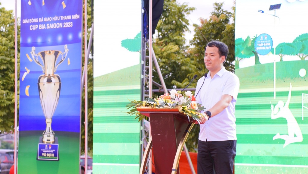 Phát biểu tại buổi lễ, đồng chí Ngô Văn Cương, Bí thư Trung ương Đoàn cho biết: “Trong năm 2022, Trung ương Đoàn TNCS Hồ Chí Minh và SABECO phối hợp triển khai các dự án lớn, cụ thể là: 34 công trình thanh niên “Thắp sáng đường quê”, 1 trong 8 công trình thanh niên tiêu biểu toàn quốc; 10 sân thể thao cộng đồng nằm trong 30 sân của dự án “Nâng bước thể thao” giai đoạn 2022-2024. Nhằm tạo sân chơi lành mạnh, bổ ích, tăng cường mối giao lưu, đoàn kết, thúc đẩy phong trào tập luyện thể dục thể thao, nâng cao sức khỏe trong cán bộ, đoàn viên, thanh niên nhân dịp bàn giao 10 sân thể thao cộng đồng ngày hôm nay, Trung ương Đoàn TNCS Hồ Chí Minh phối hợp với SABECO tổ chức Giải bóng đá giao hữu thanh niên Cup Bia Sài Gòn năm 2023.