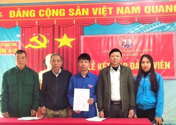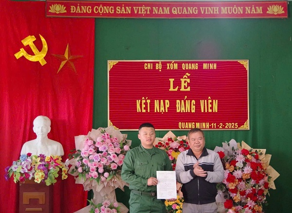 Tân binh Nguyễn Hữu Quân, sinh năm 2004, vinh dự được Chi bộ thôn 4-5, xã Lạng Sơn (huyện Anh Sơn) kết nạp Đảng