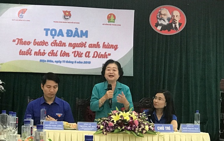 Chủ trì Tọa đàm gồm có: đồng chí Trương Mỹ Hoa, nguyên Bí thư Trung ương Đảng, nguyên Phó Chủ tịch nước Cộng hòa xã hội chủ nghĩa Việt Nam, Chủ tịch Quỹ học bổng Vừ A Dính; đồng chí Nguyễn Ngọc Lương, Bí thư Trung ương Đoàn, Chủ tịch Hội Đồng đội Trung ương; đồng chí Nguyễn Phạm Duy Trang, Trưởng ban Công tác thiếu nhi Trung ương Đoàn, Phó Chủ tịch thường trực Hội Đồng đội Trung ương.