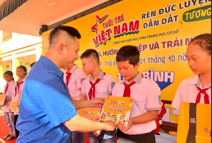 Nhân dịp này, Hội đồng Đội Trung ương, đã trao tặng 20 suất học bổng mỗi suất trị giá 01 triệu đồng và 01 bộ sản phẩm quà tặng cho 20 em thiếu nhi có hoàn cảnh có khăn của tỉnh Thái Bình.