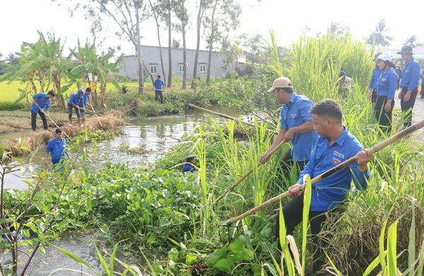 Ra quân thực hiện công trình thanh niên “Vì môi trường sống an toàn” trục vớt lục bình và cỏ dại