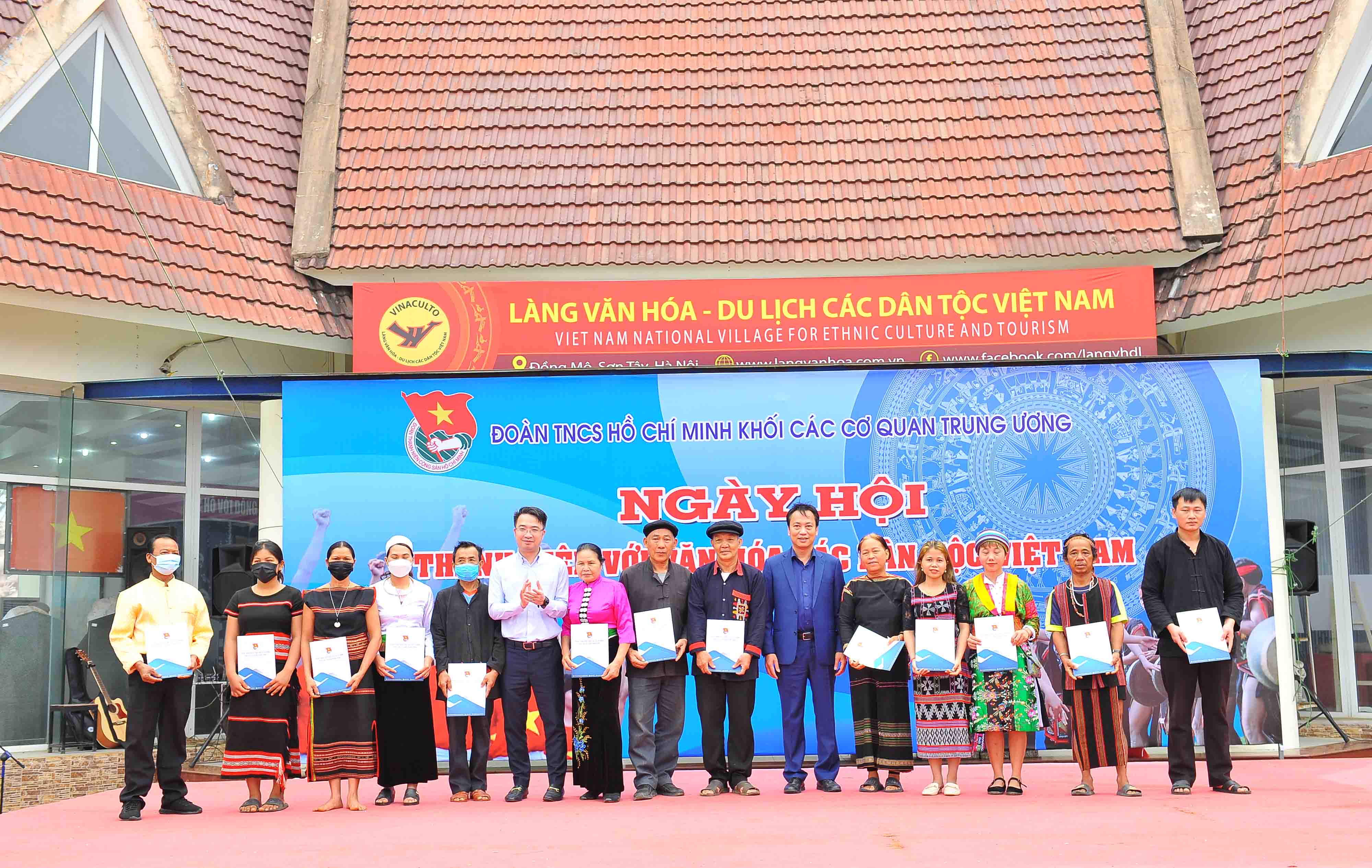 Cũng nhân dịp này, Đoàn Khối các cơ quan Trung ương cũng trao tặng 13 suất quà cho đại diện 13 dân tộc đang hoạt động hằng ngày tại Làng Văn hóa - Du lịch các dân tộc Việt Nam: Mường, Thái, Khơ Mú, Mông, Tày, Nùng, Dao, Tà Ôi, Cơ Tu, Ba Na, Xơ Đăng, Ê Đê, Khmer.