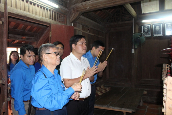 Đồng chí Nguyễn Nhân Chinh - Bí Thư Tỉnh Đoàn, Chủ tịch Hội LHTN Việt Nam tỉnh cùng các đại biểu đoàn viên ưu tú dâng hương tại khu lưu niệm Ngô Gia Tự
