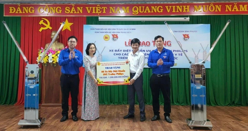 Tỉnh Đoàn Bình Phước, Đoàn Thanh niên Học Viện Chính trị khu vực II, Công ty TNHH MTV thiết bị chiếu sáng Thái Dương trao tặng 80 xe đẩy diệt khuẩn cho bệnh viện, trung tâm y tế trên địa bàn tỉnh