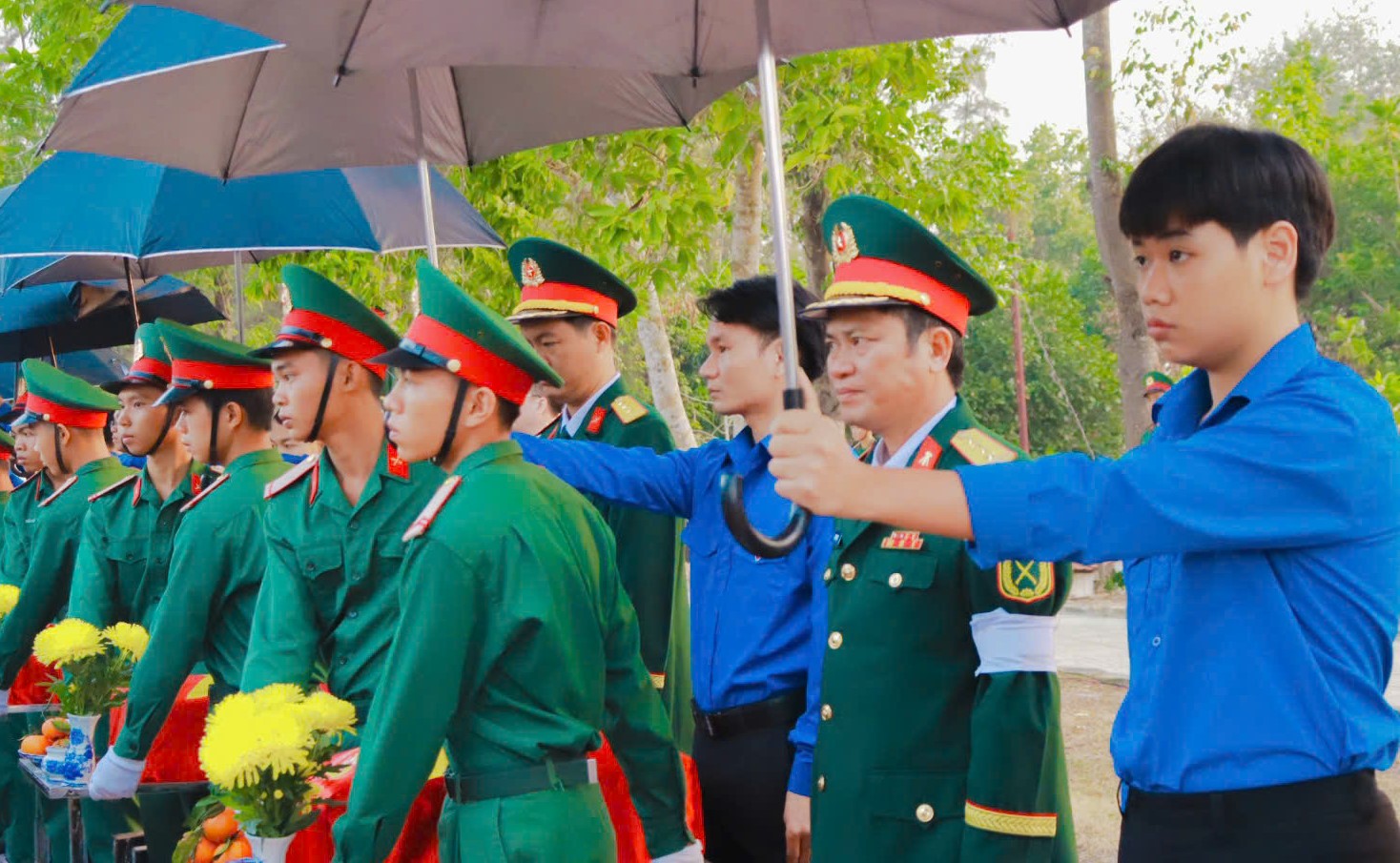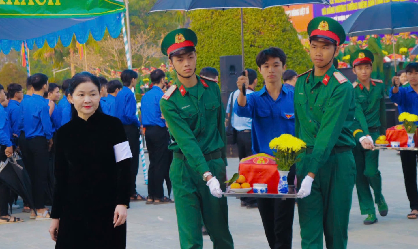 Trong suốt buổi lễ, tuổi trẻ Bình Phước đã tích cực tham gia hỗ trợ công tác tổ chức, đảm bảo lễ truy điệu và an táng diễn ra chu đáo. Các đoàn viên, thanh niên đã sắp xếp che dù cho các hài cốt liệt sĩ khi di chuyển từ sân nghi lễ đến nơi an táng, thể hiện lòng thành kính, tri ân và giúp anh linh các liệt sĩ yên nghỉ bên đồng đội.