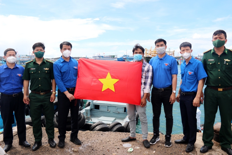 Đồng chí Ngô Văn Cương – Bí thư Trung ương Đoàn trao tặng 200 cờ Tổ quốc cho ngư dân trên đảo