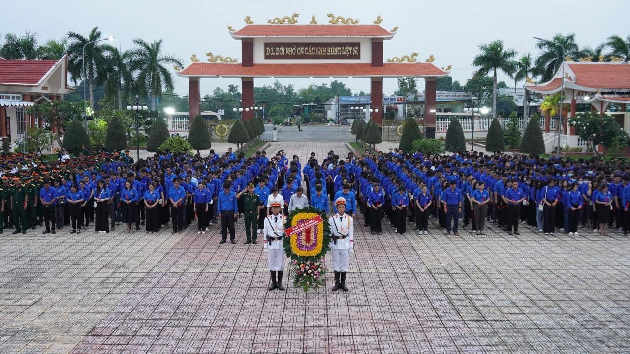 Tại nghĩa trang Liệt sĩ tỉnh, các đại biểu cùng 850 đoàn viên, thanh niên đại diện cho tuổi trẻ Cà Mau dành một phút mặc niệm, dâng tràng hoa, thắp hương và nến tri ân thành kính bày tỏ lòng biết ơn sâu sắc trước công lao to lớn đến Chủ tịch Hồ Chí Minh – Lãnh tụ vĩ đại của dân tộc Việt Nam; các anh hùng liệt sĩ, đồng bào đã ngã xuống vì lý tưởng độc lập dân tộc, chủ nghĩa xã hội và hạnh phúc của nhân dân; tưởng nhớ đến đồng chí Nguyễn Phú Trọng - Tổng Bí thư Ban Chấp hành Trung ương Đảng Cộng sản Việt Nam.