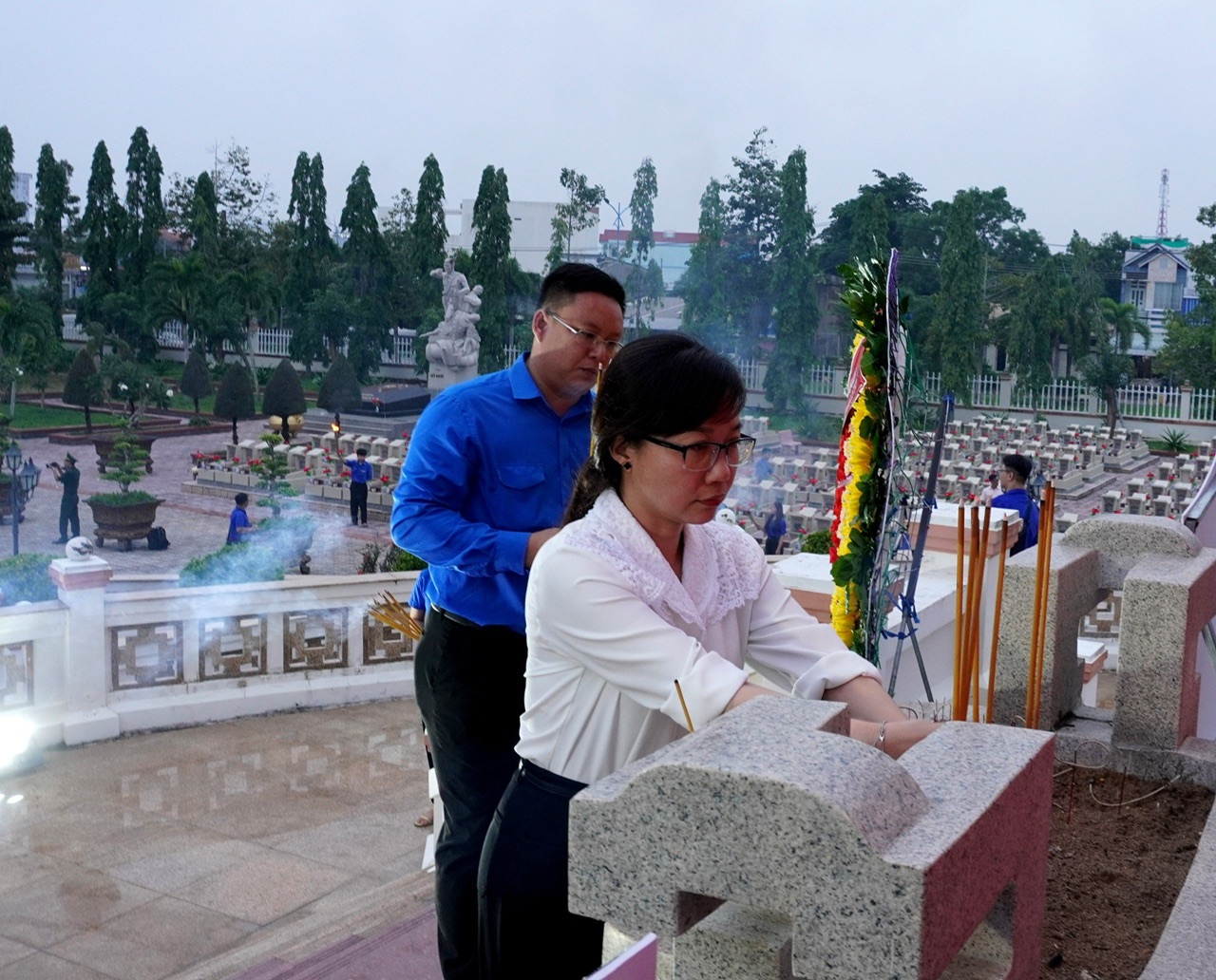 Những nén hương được các đoàn viên thanh niên thắp tại nghĩa trang