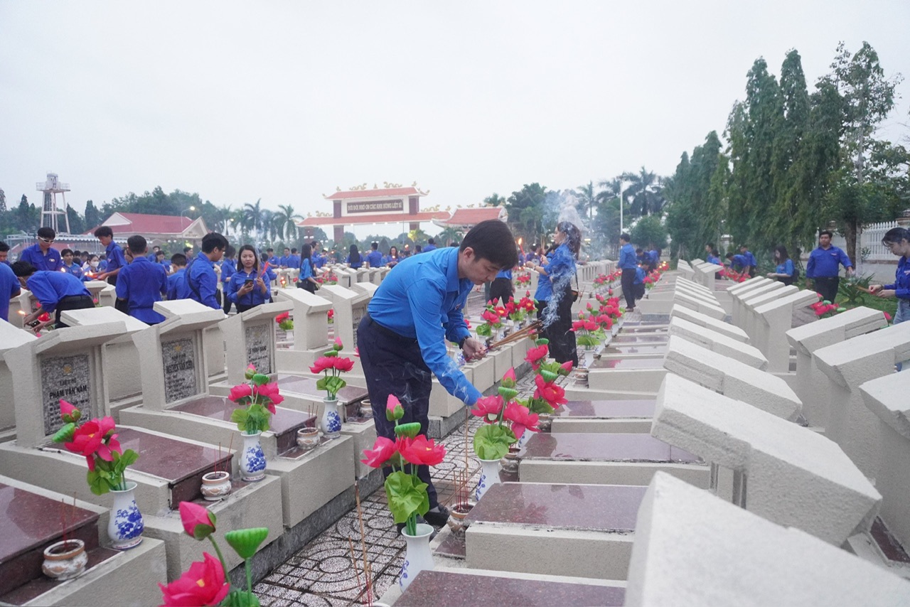 Trước đó, hàng nghìn đoàn viên, thanh niên đã tham gia dọn dẹp vệ sinh, thay bình và hoa mới, làm sạch các khu mộ, phần mộ các anh hùng liệt sĩ, dâng hương, thắp nến tri ân tại Nghĩa trang liệt sỹ tỉnh, Đền thờ 10 anh hùng Khởi nghĩa Hòn Khoai và các nghĩa trang liệt sĩ, bia ghi danh các anh hùng liệt sĩ trong toàn tỉnh.