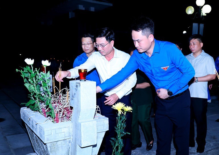 Trong không khí trang nghiêm, xúc động, các đồng chí lãnh đạo tỉnh cùng đông đảo đoàn viên, thanh thiếu nhi, nhân dân địa phương đã dâng hoa, thắp hương và thắp lên 9.000 ngọn nến tri ân các anh hùng liệt sĩ.