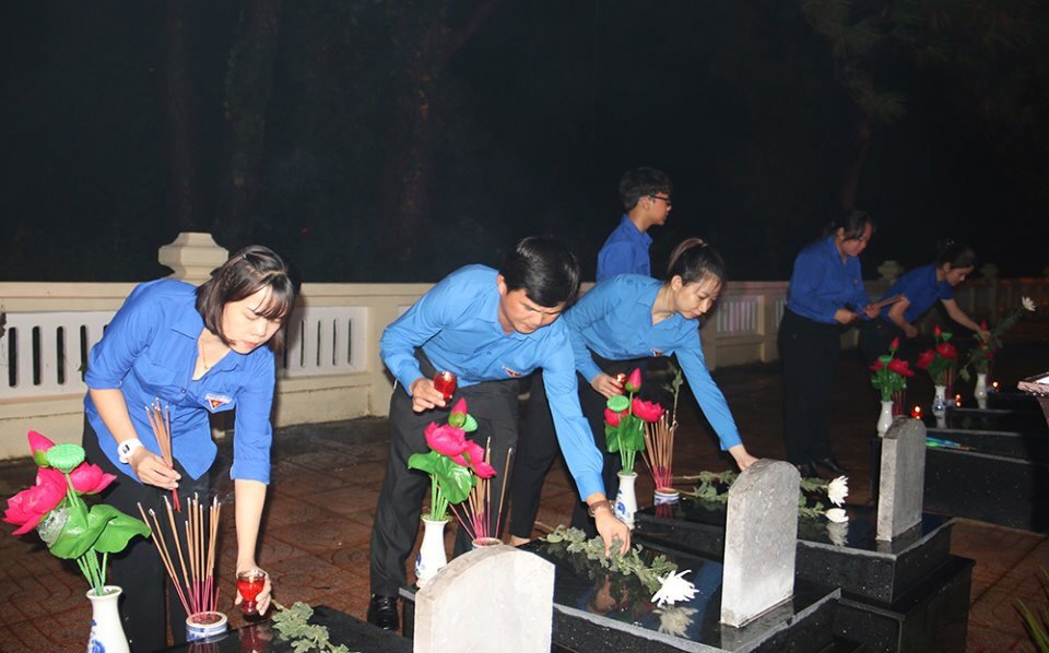 Trong buổi tối ngày hôm nay, tại 130 nghĩa trang liệt sĩ trong tỉnh, tuổi trẻ các cơ sở Đoàn đã đồng loạt dâng hương, thắp nến tri ân, tưởng nhớ biết ơn các anh hùng liệt sĩ. Hàng nghìn ngọn nến của tuổi trẻ toàn tỉnh cùng được thắp lên ấm áp, hàng nghìn lời nguyện cầu, chúc cho linh hồn các anh yên giấc ngủ ngàn thu.