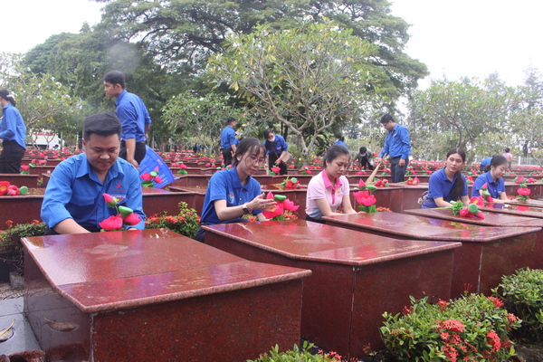 Theo đó, gần 200 đoàn viên thanh niên của các đơn vị trực thuộc đoàn khối CQ Dân Chính Đảng, Trung đoàn CSCĐ Tây Nam Bộ, đoàn thanh niên Công an thành phố và cán bộ công nhân viên Viettel cần Thơ đã tham gia lễ viếng, dâng hoa các anh hùng liệt sĩ, vệ sinh, thắp hương và thay hoa hơn 5.000 phần mộ liệt sĩ tại Nghĩa trang thành phố.