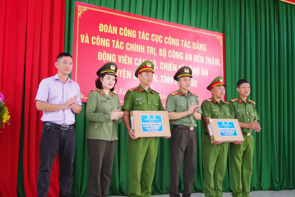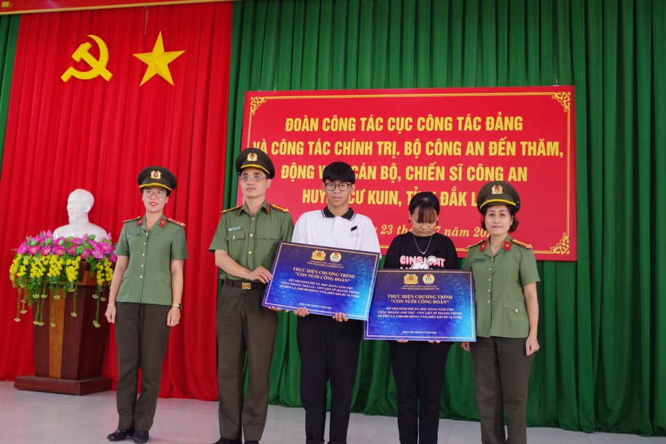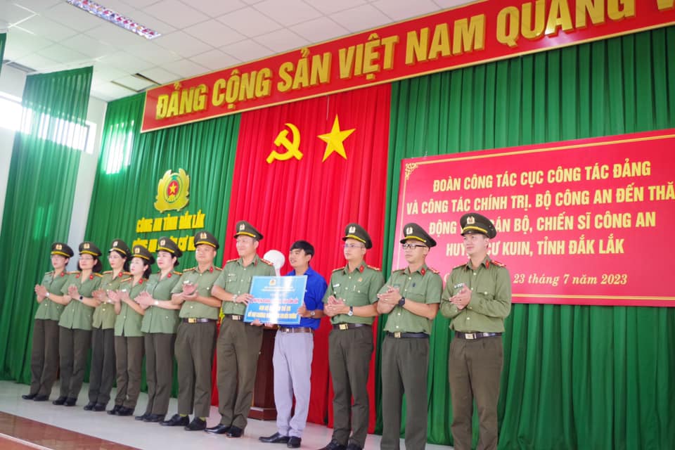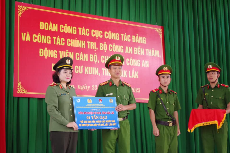 Trong chương trình, Đoàn đã tổ chức thăm, động viên cán bộ chiến sĩ Công an huyện Cư Kuin, tỉnh Đắk Lắk. Tại đây, Đoàn công tác đã trao tặng 01 tấn gạo ủng hộ chương trình “Hỗ trợ nhu yếu phẩm cho người dân tự nguyện giao nộp vũ khí, vật liệu nổ” của Công an huyện Cư Kuin; tặng 02 bộ máy tính cho Công an 02 xã Ea Ktur, Ea Tiêu nhằm hỗ trợ công tác nghiệp vụ; trao tặng 400 bộ quần áo mới cho các em học sinh người dân tộc thiểu số trên địa bàn huyện Cư Kuin; nhận nuôi thường xuyên 02 cháu (là Con liệt sĩ Công an trong vụ việc xảy tại xã Ea Ktur, Ea Tiêu) trong chương trình “Con nuôi Công Đoàn” từ nay đến 18 tuổi với mức hỗ trợ 5.000.000đ/năm/01 cháu.