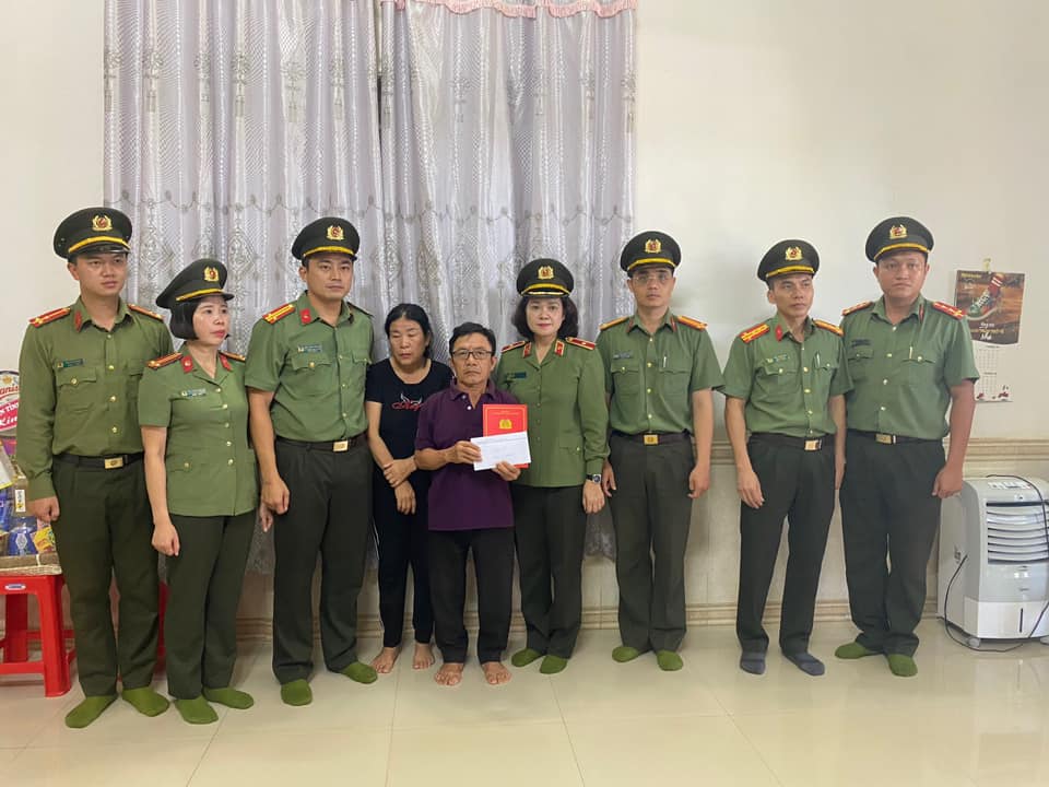 Đoàn công tác tổ chức thăm hỏi, động viên và trao kinh phí hỗ trợ 04 gia đình Liệt sĩ Công an; 02 gia đình Liệt sĩ cán bộ chính quyền địa phương và 02 cán bộ Công an bị thương với nguồn lực là 100 triệu đồng.