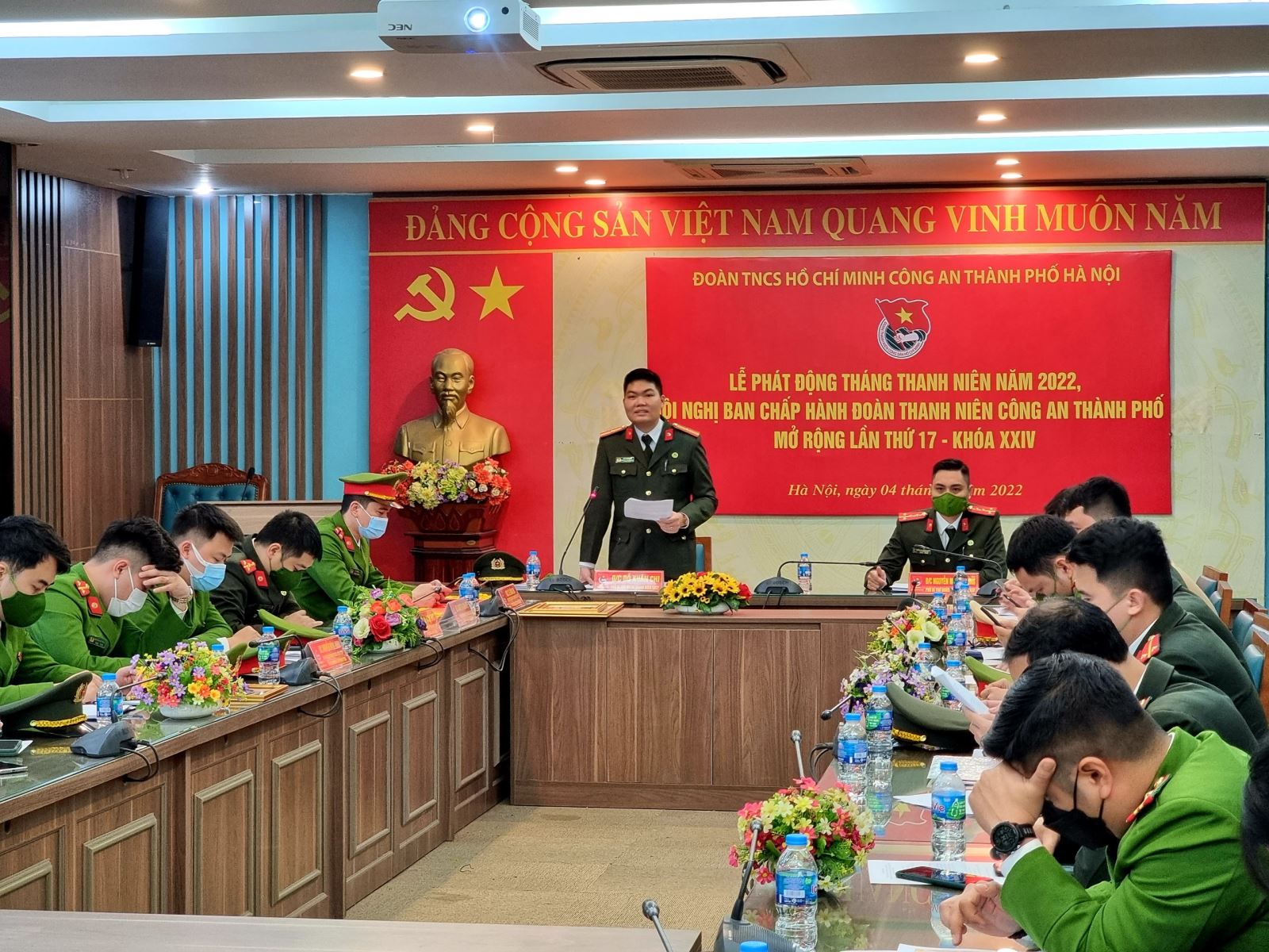 Cũng tại lễ phát động, Đoàn thanh niên Công an Tp Hà Nội đã tổ chức Hội nghị Hội nghị BCH Đoàn Thanh niên Công an Tp Hà Nội mở rộng lần thứ 17 - Khóa XXIV. Tại hội nghị các đại biểu đã thảo luận, lắng nghe ý kiến đóng góp các ý kiến vào dự thảo báo cáo chính trị của Thành đoàn Hà Nội và Đoàn thanh niên Công an thành phố và một số hoạt động được định hướng, tập trung triển khai trong Tháng Thanh niên và cả năm 2022; Rút kinh nghiệm trong công tác tổ chức đại hội Đoàn cấp cơ sở; Hướng dẫn quy trình giới thiệu Đoàn viên ưu tú năm 2021…