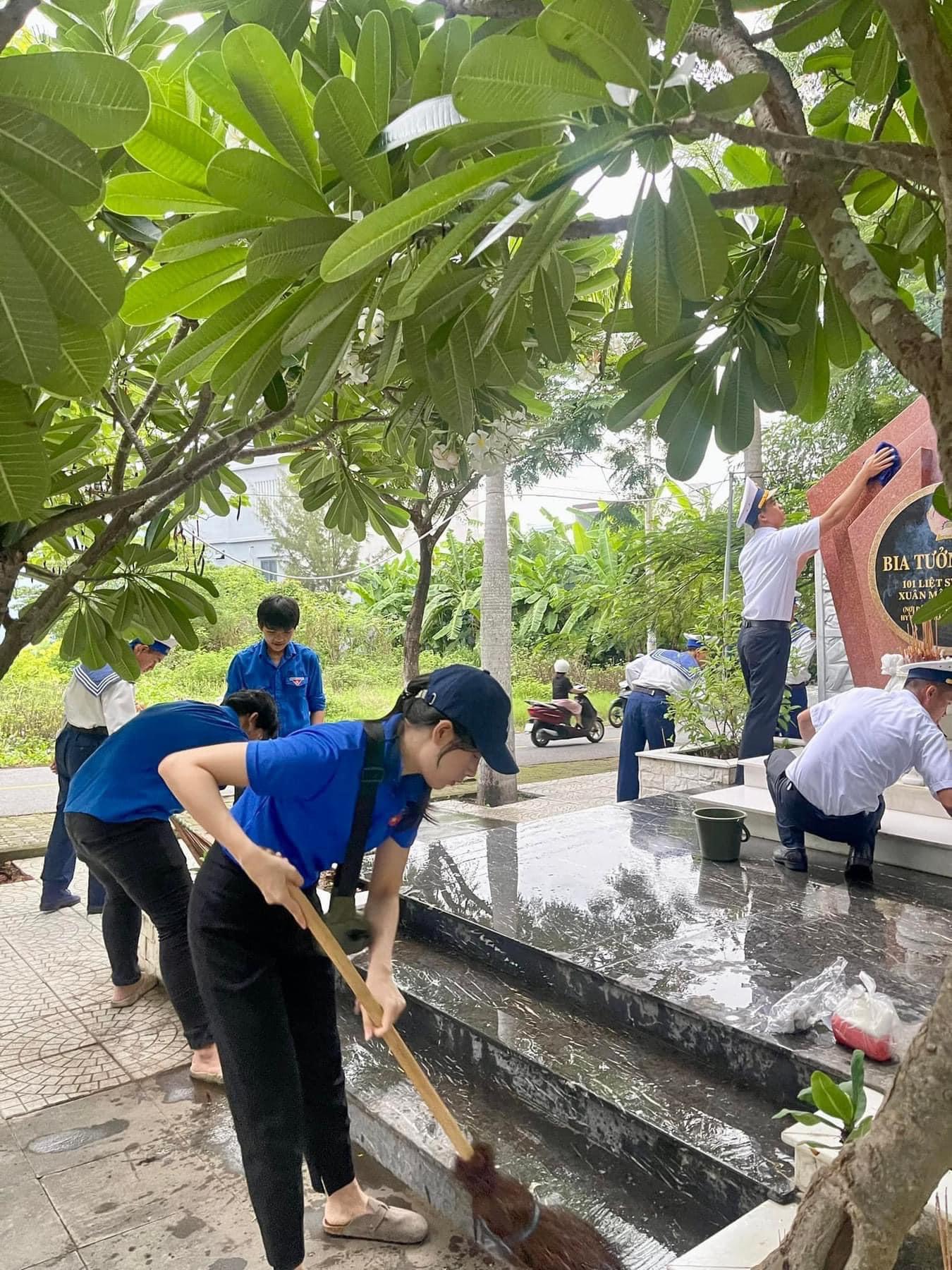Hoạt động với sự tham gia đông đảo của các bạn đoàn viên thanh niên với những phần việc ý nghĩa như dọn dẹp toàn bộ nghĩa trang, làm sạch phần mộ, vệ sinh bát nhang, thắp hương tại các phần mộ liệt sĩ.