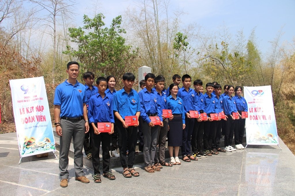 Lễ kết nạp đoàn viên mới tại cột mốc biên giới