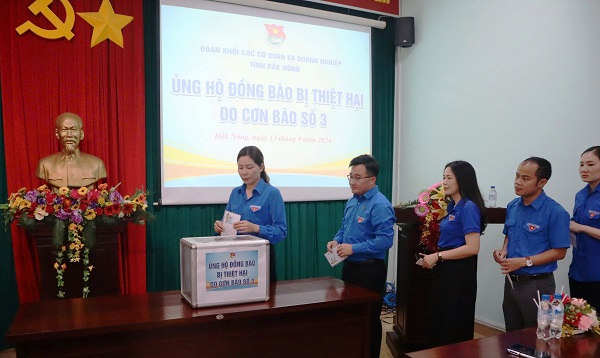 Tại điểm cầu cấp tỉnh, toàn thể cán bộ, công chức, viên chức, người lao động Cơ quan Tỉnh đoàn đã hưởng ứng, tham gia quyên góp ủng hộ nhân dân các tỉnh bị ảnh hưởng bởi cơn bão số 3 (Yagi).