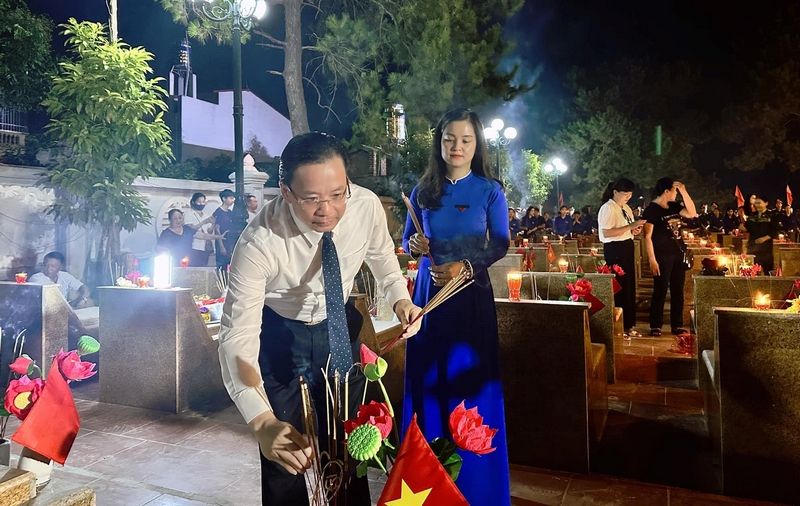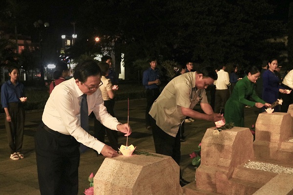 Trong không khí trang nghiêm, xúc động, các đồng chí lãnh đạo tỉnh cùng đông đảo đoàn viên, thanh thiếu nhi, nhân dân địa phương đã dâng hoa, thắp hương và thắp lên những ngọn nến tri ân trên hơn 9000 phần mộ tại Nghĩa trang liệt sĩ.