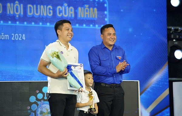 Đồng chí Nguyễn Hiếu Trung, Phó Bí thư Tỉnh đoàn trao giải vinh danh hạng mục Nhà sáng tạo nội dung của năm cho kênh tiktok “Tú Đồng Nai”
