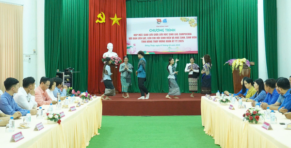 Tiết mục văn nghệ được thể hiện bởi các bạn Lưu học sinh Lào, Campuchia và các Liên Chi hội, Ban Liên lạc sinh viên Đồng Tháp