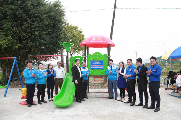 Lãnh đạo 2 đơn vị trao tặng công trình thanh niên “Điểm sinh hoạt vui chơi cho thiếu nhi” tại thôn Ngũ Cõi, xã Liêm Cần, huyện Thanh Liêm