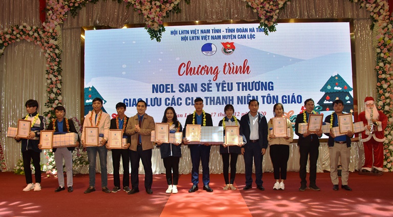 Theo đó, chuỗi chương trình “Noel - san sẻ yêu thương” do Tỉnh đoàn, Hội LHTN Việt Nam tỉnh tổ chức đã trao tặng 300 suất quà với tổng trị giá hơn 200 triệu đồng cho cán bộ Đoàn, Hội, Đội, thanh thiếu nhi theo đạo có hoàn cảnh khó khăn trên địa bàn các huyện Hương Khê, Can Lộc, Thị xã Kỳ Anh. Đặc biệt, chương trình “Noel san sẻ yêu thương, giao lưu các câu lạc bộ thanh niên tôn giáo” tại huyện Can Lộc đã có nhiều tiết mục văn nghệ đặc sắc và đầy ý nghĩa, mang trên mình màu thanh niên tình nguyện các thanh niên tham gia các Câu lạc bộ Thanh niên tôn giáo cùng cất vang những ca khúc ca ngợi Bác Hồ, ca ngợi tình yêu quê hương, đất nước và thể hiện tình yêu Thiên chúa; cũng tại chương trình, Hội LHTN huyện Can Lộc tổ chức tuyên dương 10 thanh niên tôn giáo điển hình trong học tập và tham gia các hoạt động xã hội, sống tốt đời đẹp đạo.