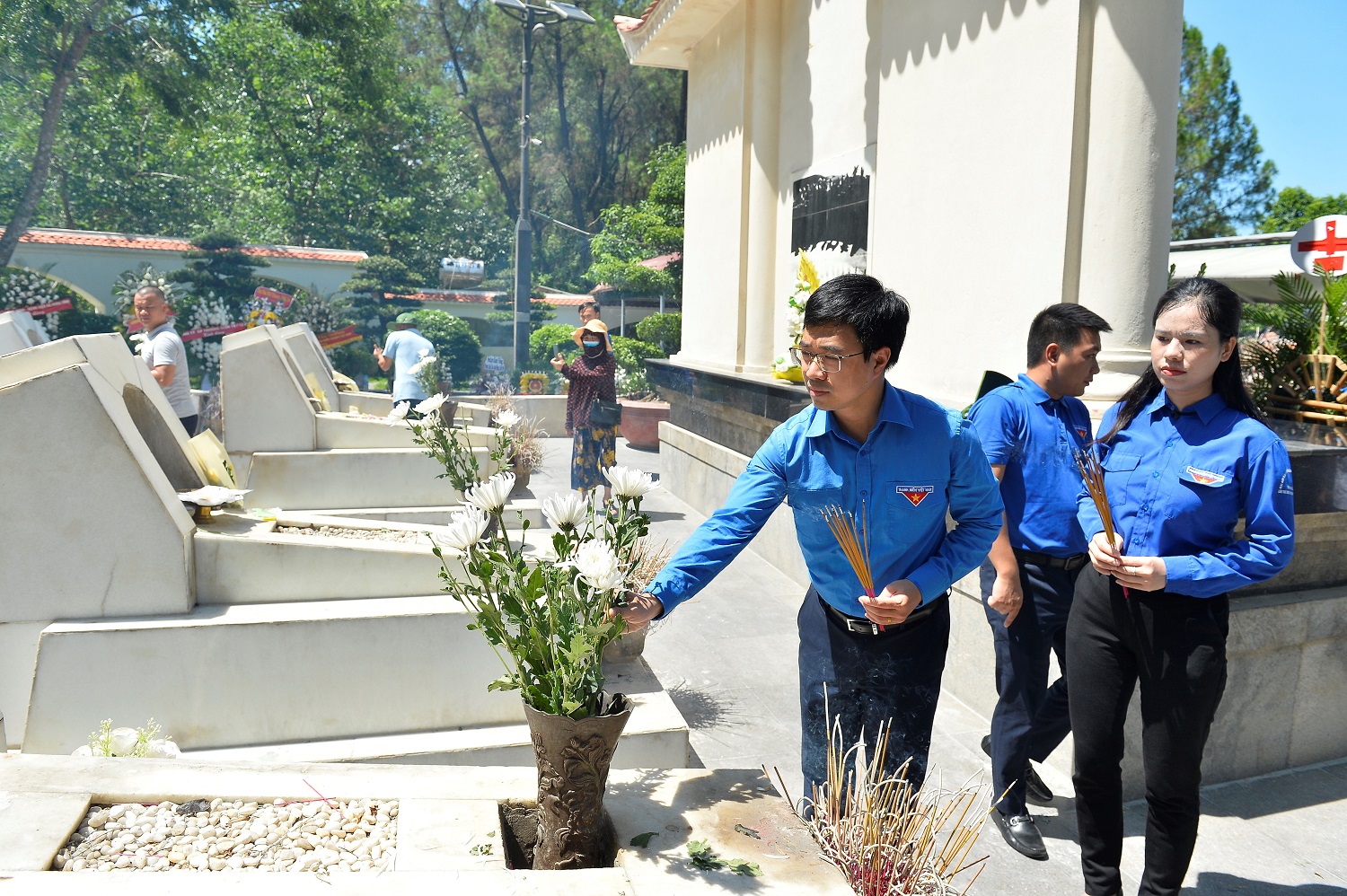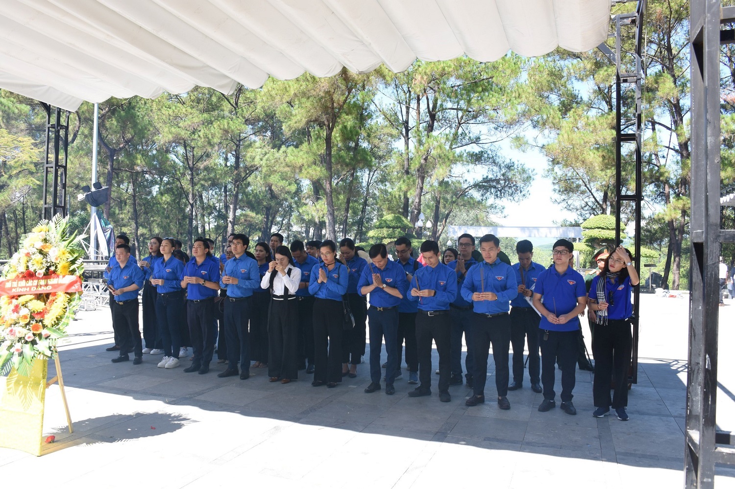 Đồng chí Bùi Hoàng Tùng, Uỷ viên Ban Thường vụ Trung ương Đoàn, Bí thư Đoàn Khối các cơ quan Trung ương dâng hương 10 nữ anh hùng tại Ngã ba Đồng Lộc, tỉnh Hà Tĩnh