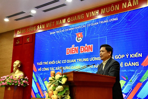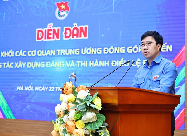 Phát biểu khai mạc Diễn đàn, đồng chí Bùi Hoàng Tùng, Ủy viên Ban Chấp hành Đảng bộ Khối, Ủy viên Ban Thường vụ Trung ương Đoàn, Bí thư Đoàn Khối cho biết: Với gần 90 nghìn đoàn viên, thanh niên đang học tập, lao động, công tác tại 56 cơ sở đoàn trực thuộc là các cơ quan tham mưu chiến lược của Đảng, Nhà nước, Mặt trận Tổ quốc và các đoàn thể chính trị - xã hội, các cơ sở đào tạo, cơ quan nghiên cứu khoa học, báo chí, thông tấn, các tổ chức xã hội - nghề nghiệp ở Trung ương, trong những năm qua, tuổi trẻ Khối và các cấp bộ đoàn trực thuộc luôn nhận thức rất rõ trách nhiệm của mình với Đảng và với công tác xây dựng Đảng.