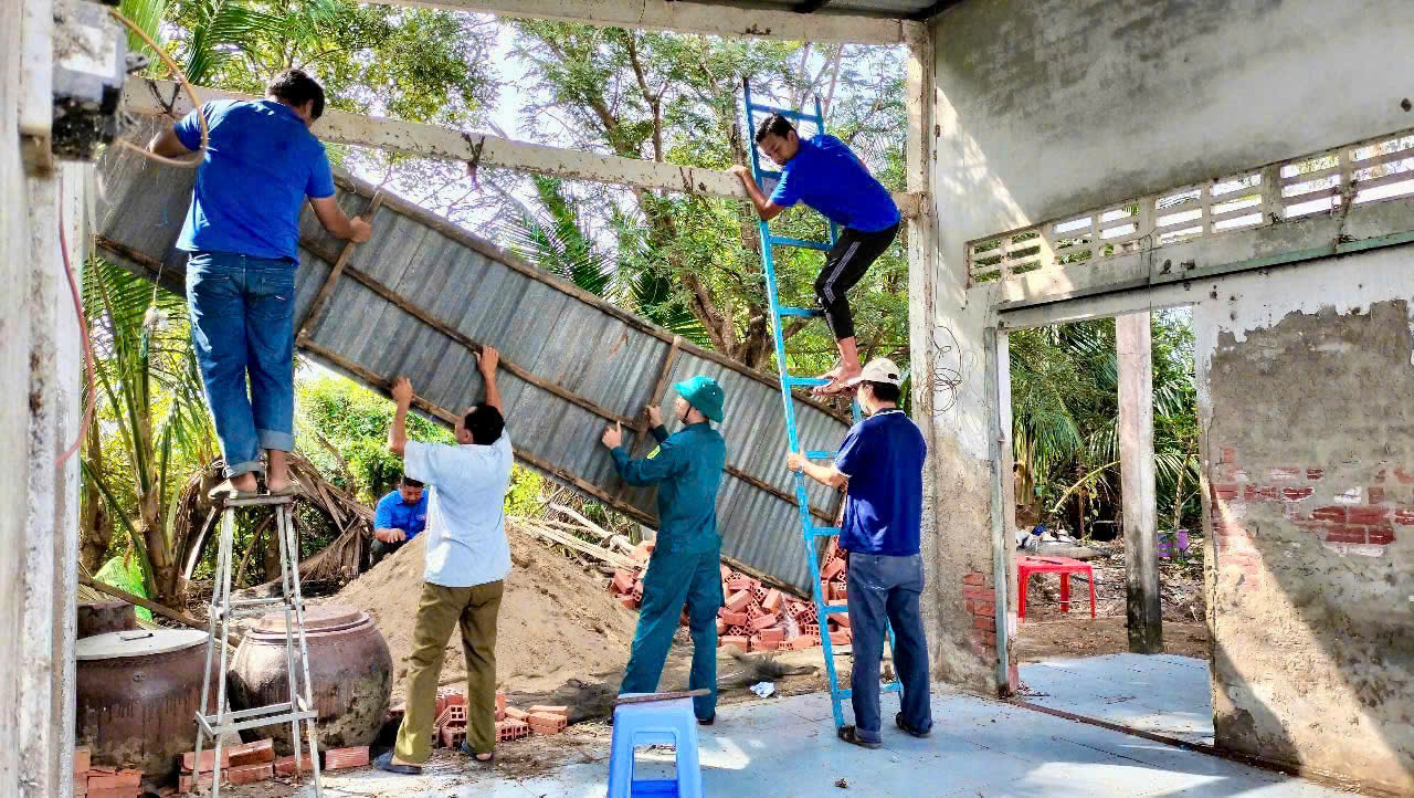Trong tháng thanh niên 2025, hàng chục đội hình gồm đoàn viên 20 cơ sở Đoàn trực thuộc Ban Thanh niên Công an tỉnh trực tiếp tham gia 3 cùng “cùng ăn, cùng ở, cùng làm” với nhân dân trong thực hiện phong trào xóa nhà tạm, nhà dột nát cho hộ nghèo, hộ cận nghèo trên địa bàn tỉnh từ thứ sáu đến chủ nhật hàng tuần.