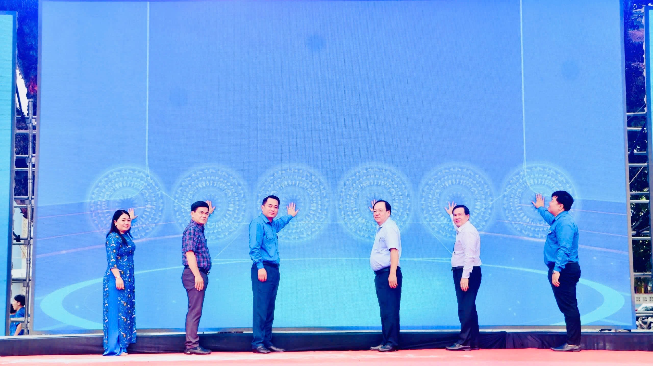 Các đại biểu thực hiện nghi thức ấn nút khởi động tháng Thanh niên tỉnh Kiên Giang năm 2025.