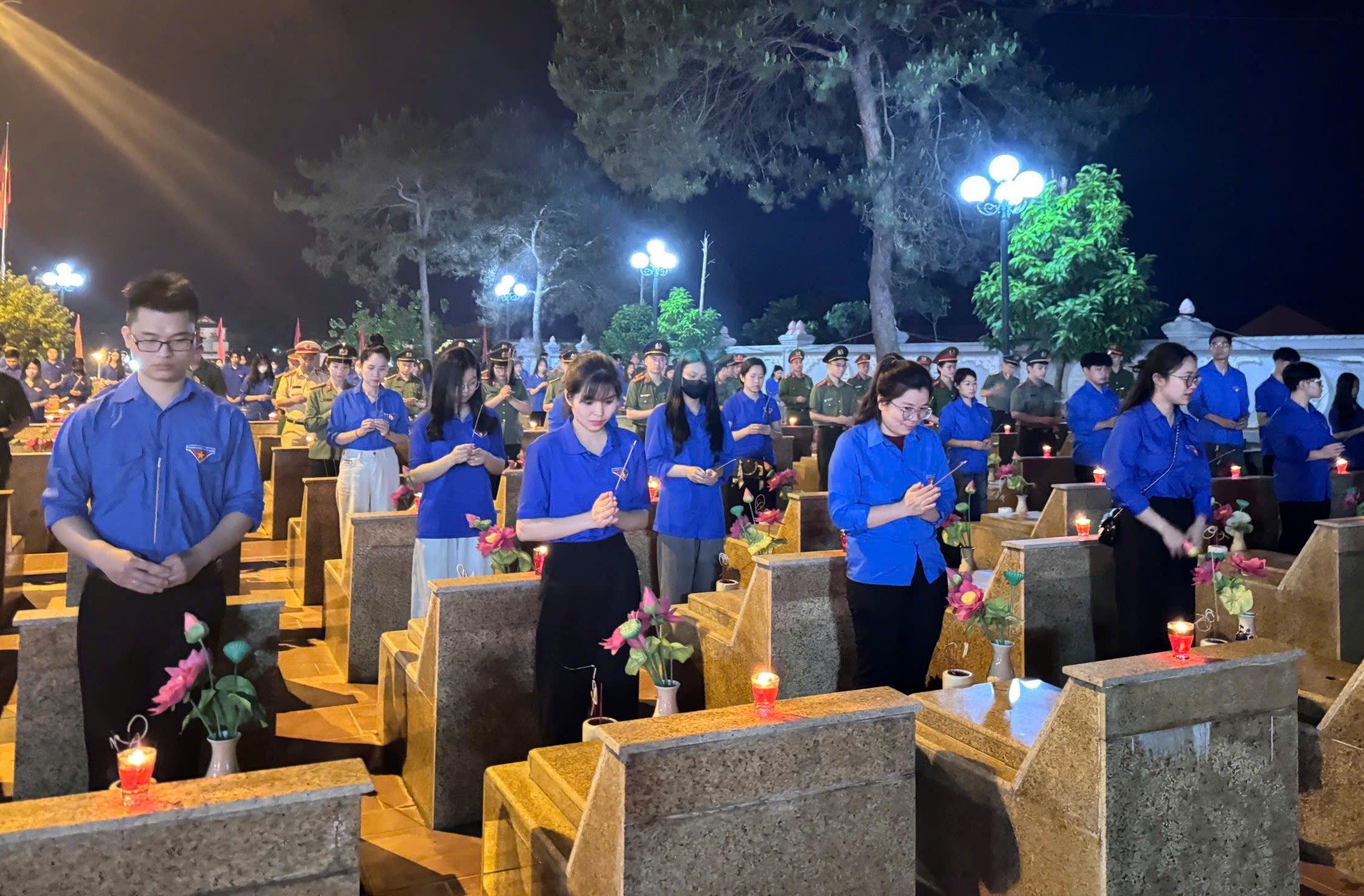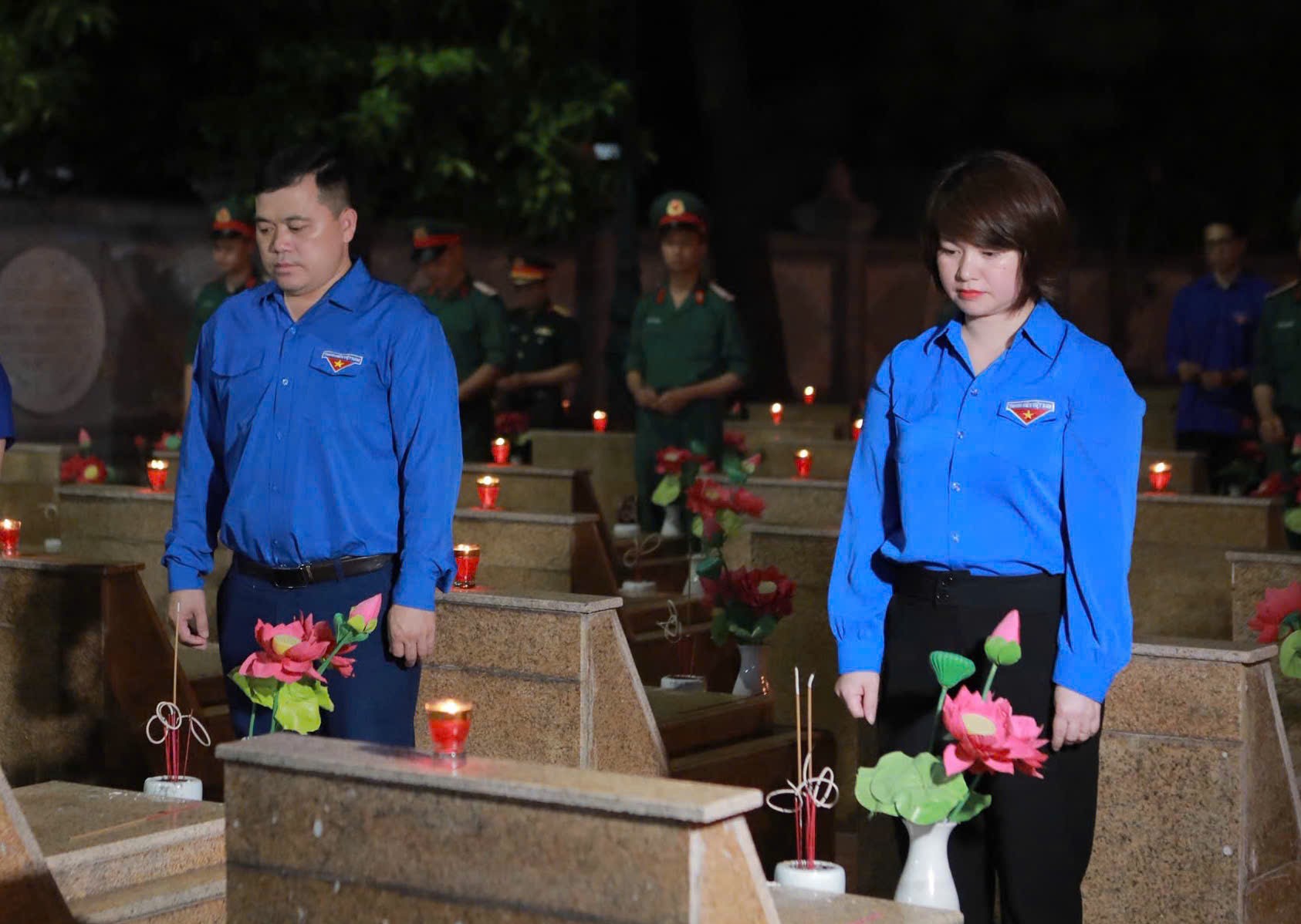Trong không khí thiêng liêng và tôn kính, các đoàn viên, thanh niên đã thành kính dâng hương và thắp những ngọn nến lung linh tại các phần mộ liệt sĩ. Mỗi ngọn nến là một lời tri ân, là biểu tượng của lòng biết ơn vô hạn dành cho những anh hùng liệt sĩ đã hy sinh thân mình để bảo vệ Tổ quốc.