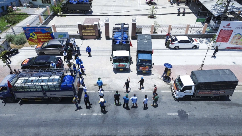 Lực lượng đoàn viên thanh niên và đội tình nguyện ra quân cấp nước cho người dân. Ảnh: HD