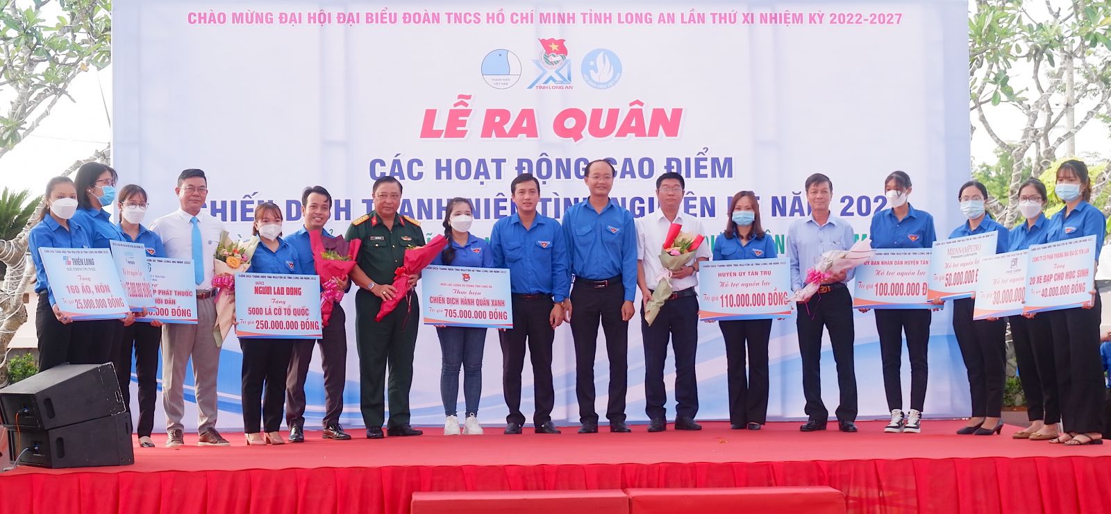 Tại lễ phát động, BTV Tỉnh đoàn ra mắt Ban Chỉ huy Chiến dịch Thanh niên tình nguyện hè năm 2022 và các đội hình thanh niên tình nguyện trên địa bàn tỉnh gồm: đội hình Hành quân Xanh; đội hình Kỳ nghỉ hồng; đội hình Mùa hè Xanh; đội hình IT xanh; đội hình Gia sư tiếng Anh; đội hình Hoa phượng đỏ; đội hình tri thức trẻ tình nguyện. Đồng thời, trao học bổng cho 50 em học sinh có hoàn cảnh khó khăn vươn lên học giỏi trên địa bàn huyện Tân Trụ, Châu Thành, Cần Đước, mỗi phần học bổng trị giá 1 triệu đồng; trao 20 chiếc xe đạp cho các học sinh có hoàn cảnh khó khăn; trao 50 phần quà cho gia đình chính sách, gia đình có hoàn cảnh khó khăn.