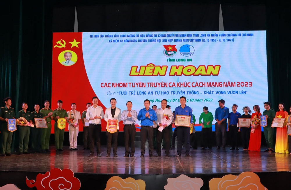 Liên hoan các nhóm tuyên truyền ca khúc cách mạng năm 2023 diễn ra trong 3 ngày 21/9/2023, 01/10/2023 và 07/10/2023, lần lượt tại 3 Cụm thi đua với sự đăng cai tổ chức của 3 đơn vị: Thị Đoàn Kiến Tường, Huyện Đoàn Tân Trụ, Đoàn khối Cơ quan và Doanh nghiệp tỉnh với sự tham gia của gần 300 diễn viên, đoàn viên, thanh niên đến từ 21 đội, nhóm TCM của các Huyện, Thị, Thành Đoàn và Đoàn trực thuộc Tỉnh Đoàn.