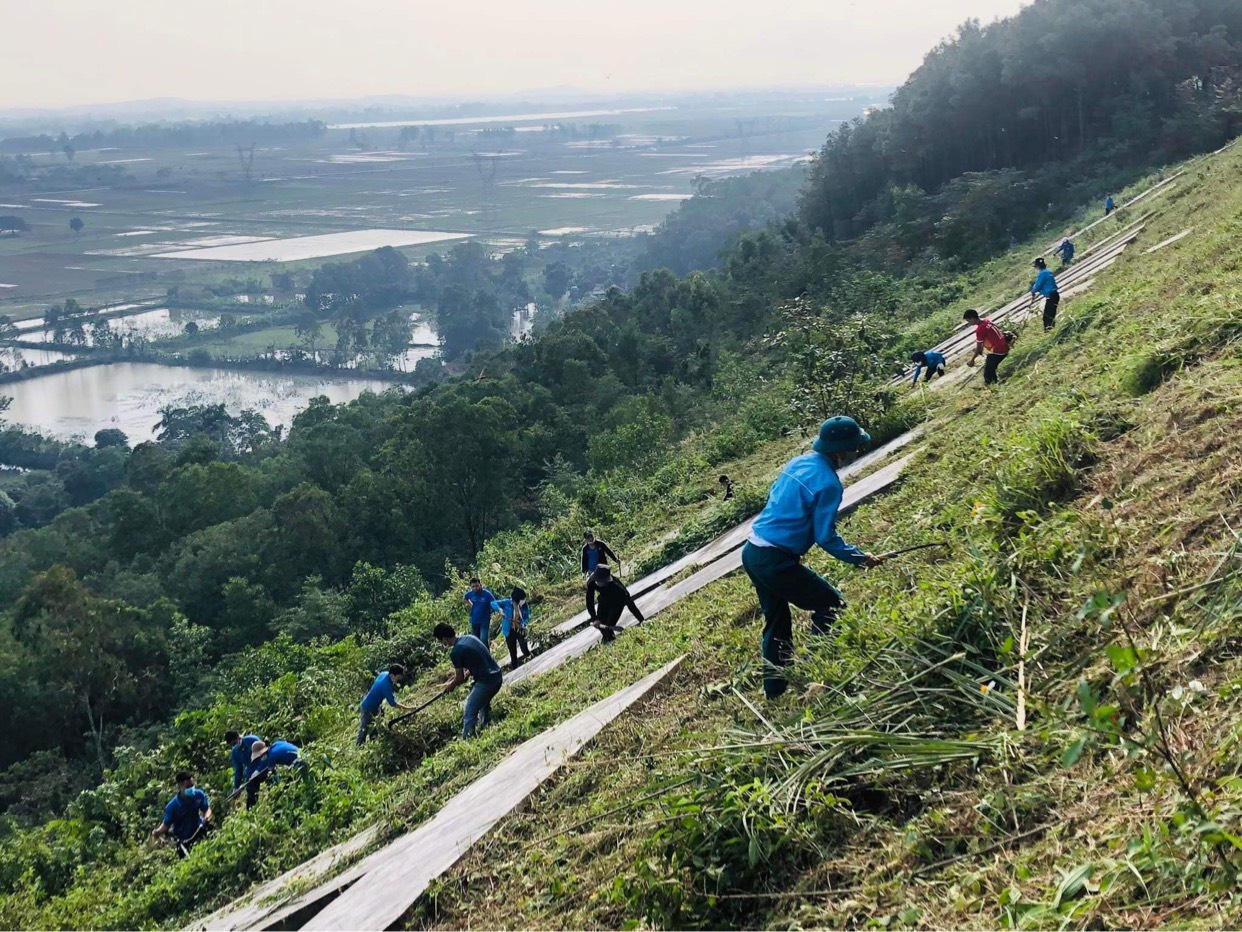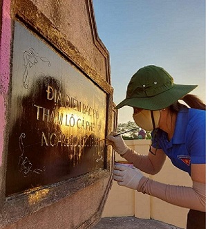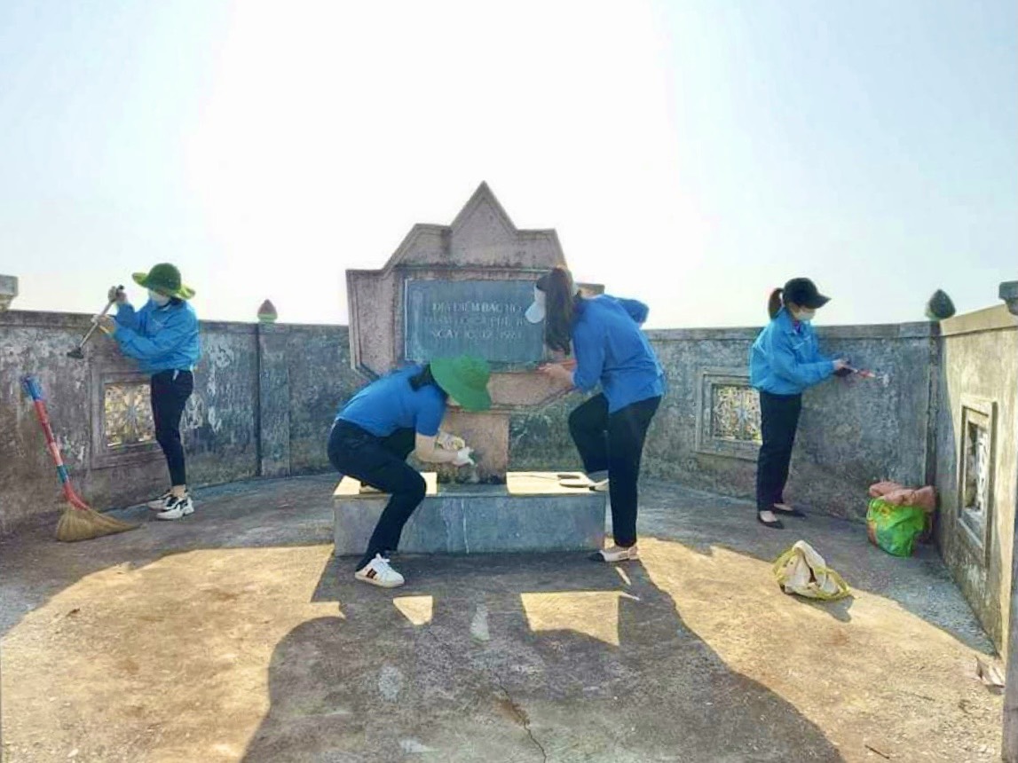 Tuổi trẻ Nam Đàn ra quân chỉnh trang công trình dòng chữ "Đời đời nhớ ơn Bác Hồ vĩ đại"