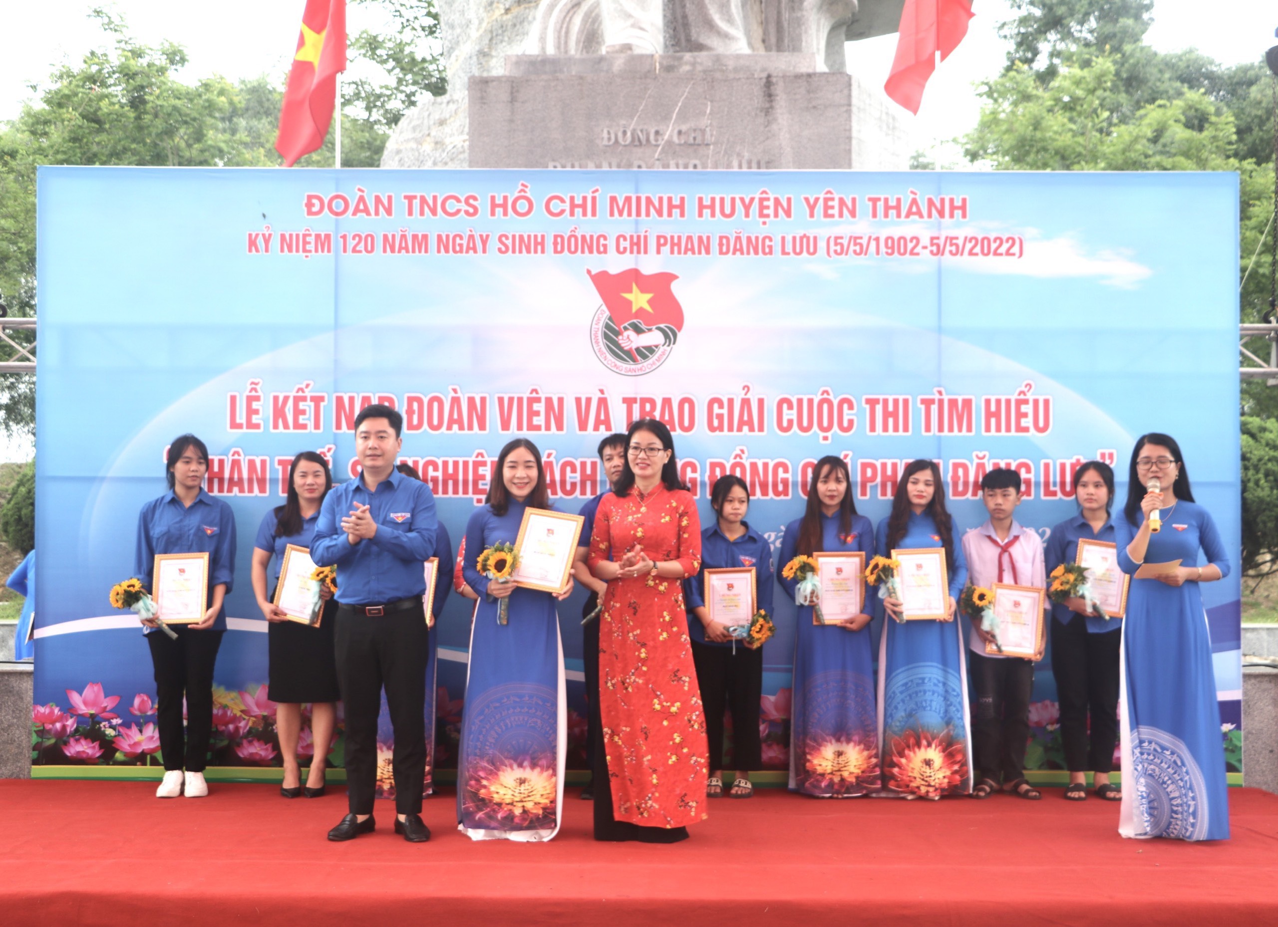 Chiều ngày 29/04/2022, tại quảng trường đồng chí Phan Đăng Lưu, huyện Yên Thành - quê hương sinh thành nên người anh hùng cách mạng, Huyện đoàn Yên Thành tổ chức Lễ kết nạp đoàn viên và trao giải cuộc thi tìm hiểu "Thân thế, sự nghiệp đồng chí Phan Đăng Lưu".