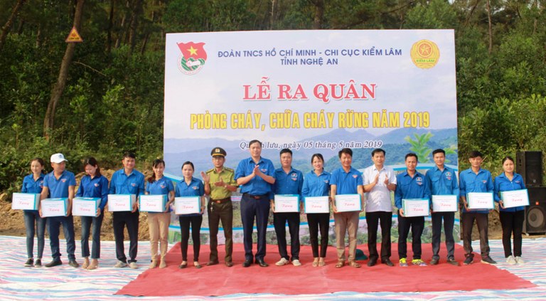 Dịp này, Tỉnh đoàn, Chi cục Kiểm lâm tỉnh trao 15 phần quà cho các đội thanh niên tình nguyện tham gia phòng cháy chữa cháy rừng trên địa bàn huyện Quỳnh Lưu.
