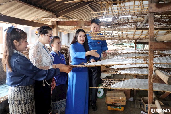 Đoàn công tác của tuổi trẻ Nghệ An thăm các mô hình kinh tế tiêu biểu của tỉnh Xiêng Khoảng. Ảnh: Quang Huy