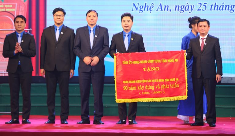Tại lễ kỷ niệm, Đoàn Thanh niên Cộng sản Hồ Chí Minh tỉnh Nghệ An vinh dự nhận bức trướng của lãnh đạo tỉnh với dòng chữ “Đoàn thanh niên Cộng sản Hồ Chí Minh tỉnh Nghệ An - 90 năm xây dựng và phát triển (1931-2021)” cùng lẵng hoa tươi thắm.