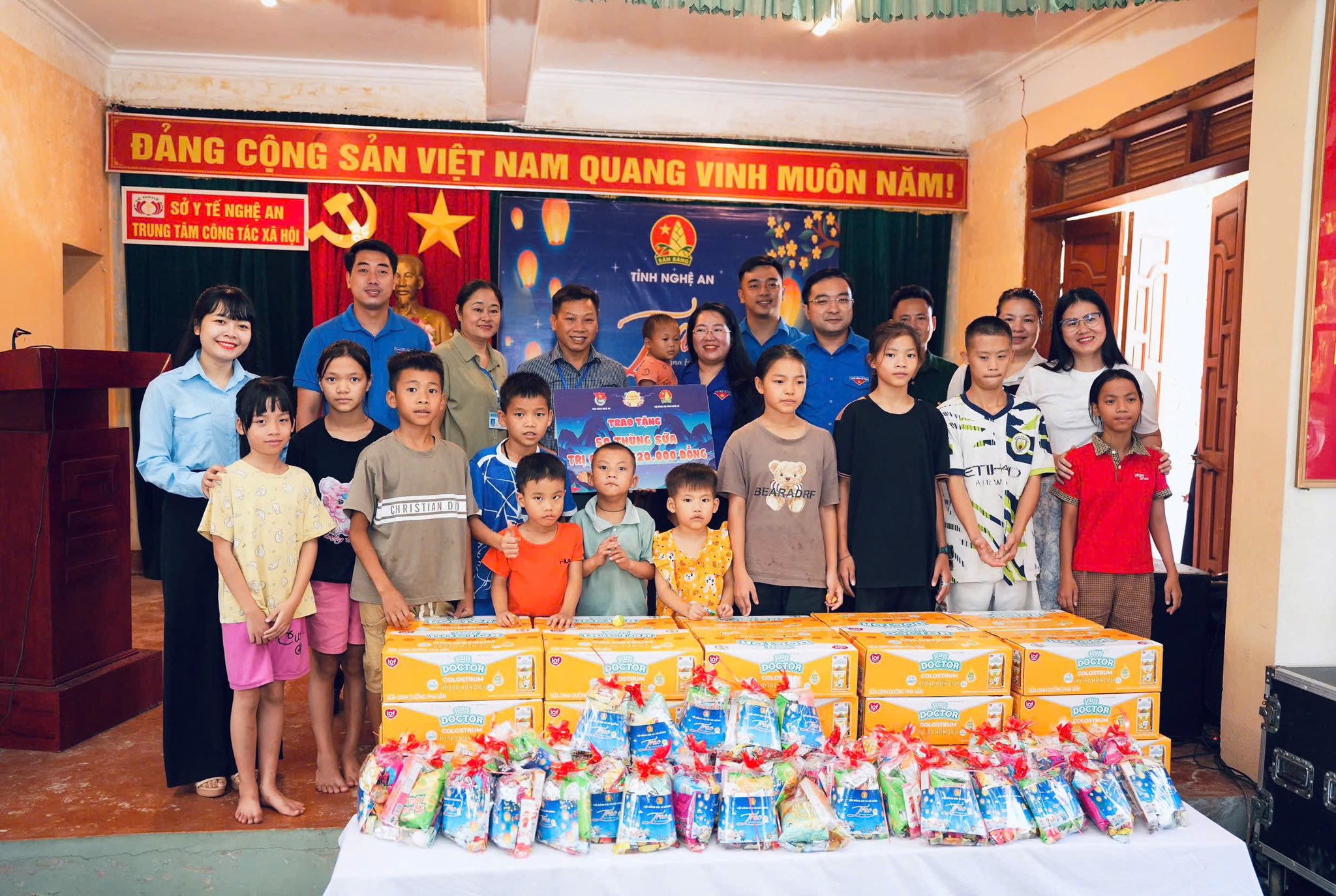 Được biết, Trung tâm công tác xã hội tỉnh Nghệ An có trụ sở tại địa bàn xã Đô Lương hiện đang chăm sóc, nuôi dưỡng 50 trẻ em mồ côi. Tại đây, các em được chăm sóc, nuôi dưỡng trong môi trường an toàn, được học tập, rèn luyện và tham gia các hoạt động vui chơi phù hợp. Tại chương trình, Tỉnh đoàn - Hội đồng Đội tỉnh Nghệ An và Đoàn xã Đô Lương đã trao tặng 50 thùng sữa trị giá hơn 35 triệu đồng cùng 50 suất quà trị giá 2,5 triệu đồng. Bên cạnh đó, tổ chức hoạt động cắt tóc miễn phí và chuẩn bị 52 suất cơm ấm nóng cho các em, góp phần mang đến một Trung thu trọn vẹn, ấm áp.