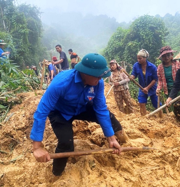 Tại Kỳ Sơn, Ban Thường vụ Huyện đoàn đã chỉ đạo các đơn vị kích hoạt các đội hình "Thanh niên xung kích" sẵn sàng phối hợp với lực lượng chức năng tại các địa phương tham gia ứng phó và khắc phục hậu quả mưa lũ. Tại địa bàn các xã bị ảnh hưởng nặng như Bảo Nam, Huồi Tụ, Nậm Càn... lực lượng đoàn viên, thanh niên đã tiên phong thực hiện nhiều nhiệm vụ khó khăn. Ảnh: Huyện đoàn Kỳ Sơn