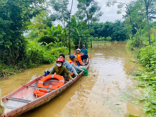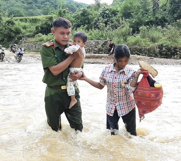 Đối với tuổi trẻ công an các đơn vị, địa phương đã huy động hơn 1.700 cán bộ chiến sĩ tăng cường bám địa bàn cơ sở, thường trực tại các điểm sạt lở, ngập sâu, ngập tràn để hỗ trợ người dân trong và sau lũ. Ảnh: Phạm Thủy