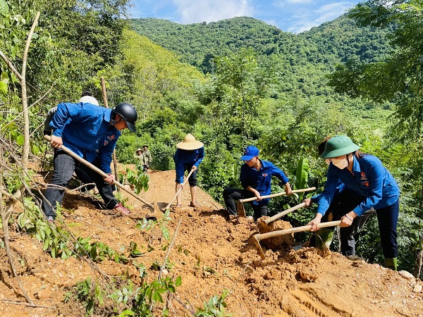 Các đoàn viên, thanh niên tại các địa phương xung kích trong việc khắc phục hậu quả lại các tuyến đường, các công trình bị vùi lấp do mưa lũ. Ảnh tư liệu: Lô Lan