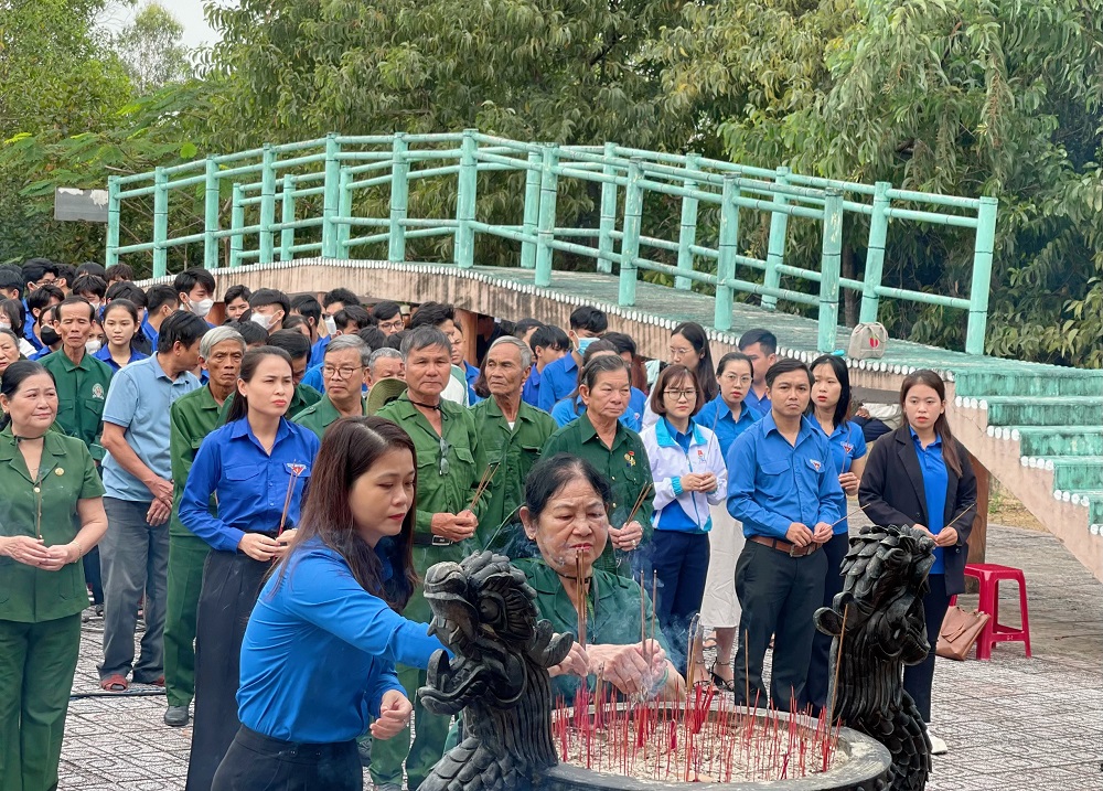 Dâng hoa, viếng hương di tích lịch sử cấp tỉnh “Địa điểm nhập ngũ của thanh niên huyện Bắc Tam Kỳ trong kháng chiến chống Mỹ cứu nước”- Cầu Vinh dự, xã Tam Thăng, thành phố Tam Kỳ.
