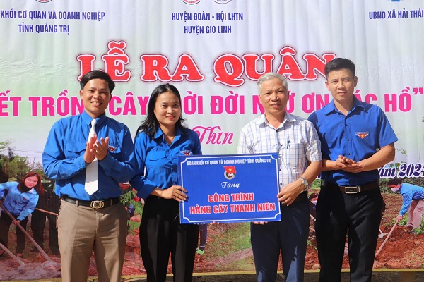 Tiêu biểu: Đoàn khối CQ&DN tỉnh phối hợp Huyện Đoàn Gio Linh tổ chức Lễ ra quân hưởng ứng Tết trồng cây: trồng mới 130 cây xanh và trao tặng công trình “Hàng cây thanh niên” cho Đoàn xã tại xã Hải Thái, huyện Gio Linh; Huyện Đoàn Vĩnh Linh phối hợp UBND xã Vĩnh Thuỷ tổ chức Lễ ra quân Tết trồng cây "Đời đời nhớ ơn Bác Hồ" Xuân Giáp Thìn năm 2024: trồng cây bàng Đài Loan, phát động phong trào thi đua trồng cây xanh, trồng và bảo vệ rừng; triển khai thực hiện tốt chỉ tiêu “Mỗi đoàn viên, thanh niên trồng và chăm sóc ít nhất 01 cây xanh hàng năm” tại địa phương, đơn vị.