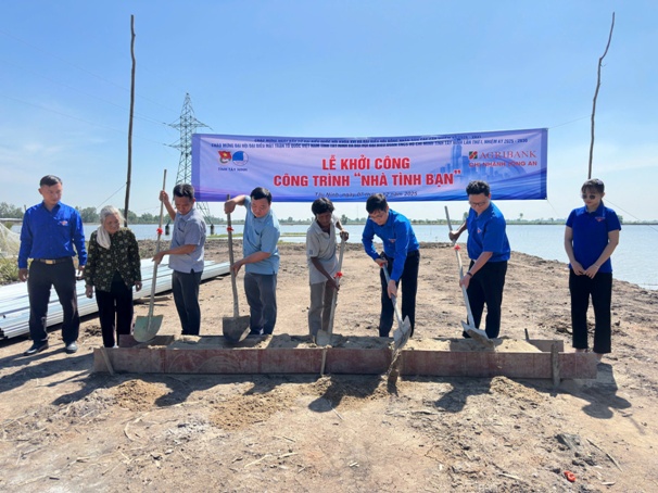 Đại biểu thực hiện nghi thức khởi công Nhà tình bạn.