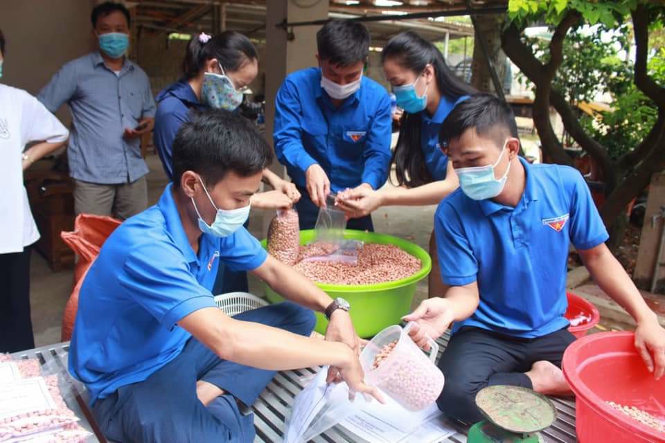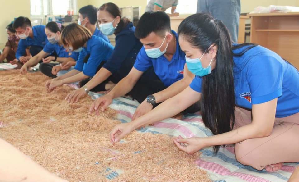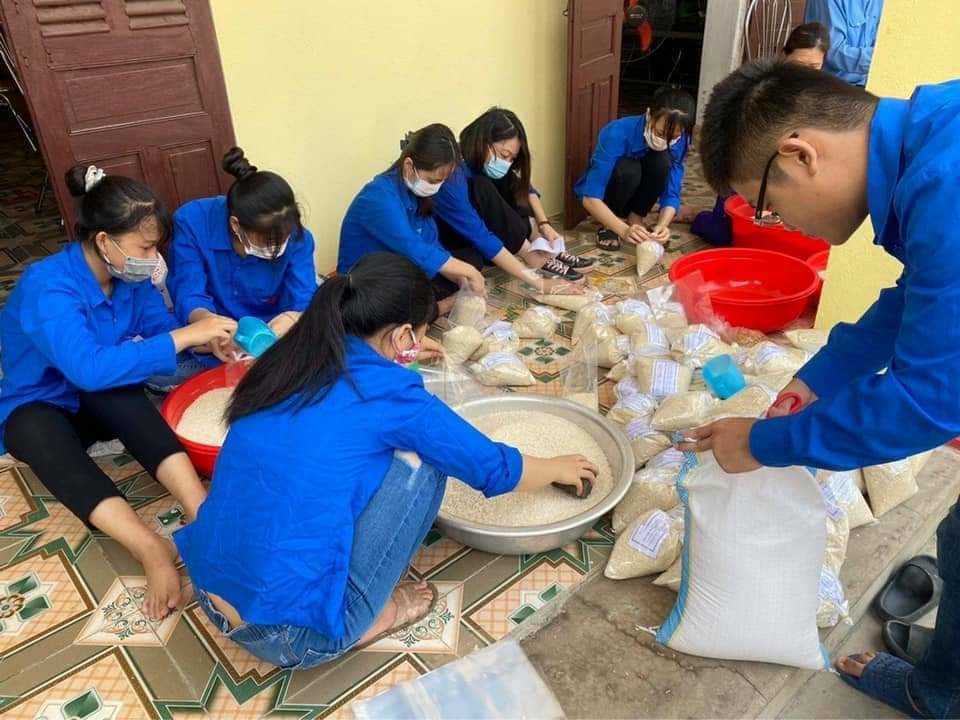 ĐVTN chia đều đồ khô thành những túi nhỏ, thuận tiện cho việc phân phát